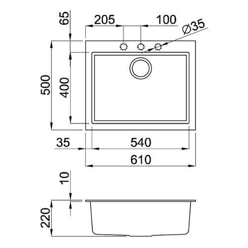 Lavello 1 vasca (58x44cm) QUADRA 110 SOTTOTOP Bianco Opaco LGQ11068BSO