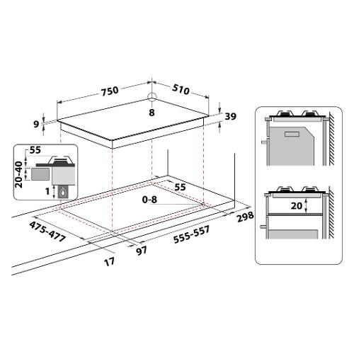 Piano cottura gas 5 zone Pcn 752 U Ix Ha Inox (75cm)