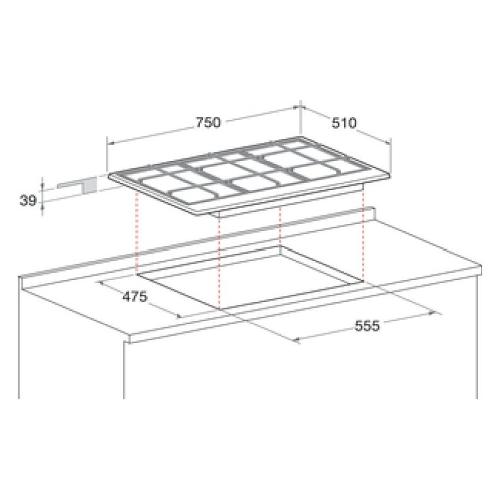 Piano cottura gas 5 zone Pcn 752 T Ix Ha Inox (75cm)
