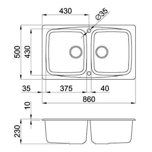 Lavello 2 vasche (86x50cm) MASTER 450 Bianco antico Opaco LGM45062