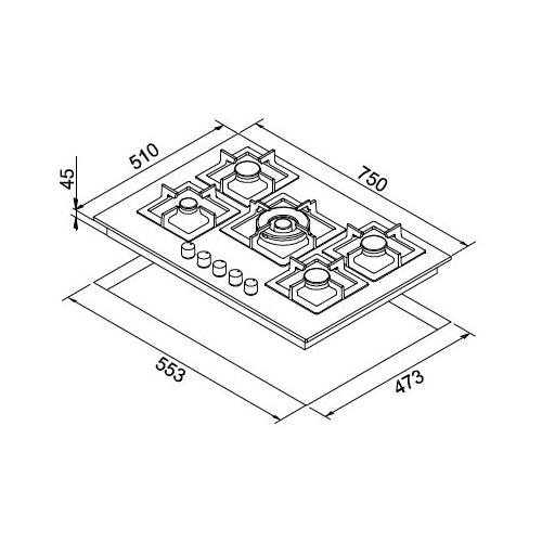 Piano cottura gas 5 zone PLANO G68 Bianco (75cm)