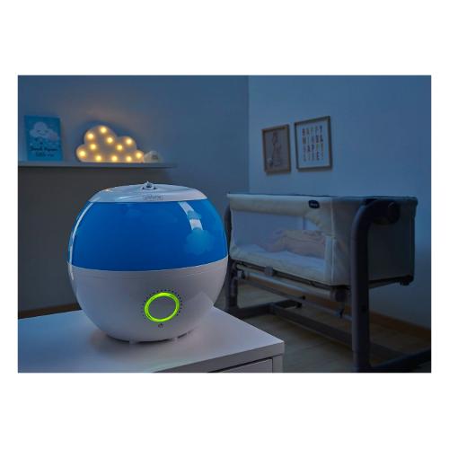 L'Umidificatore Humi Fresh aiuta a ristabilire il corretto livello di umidità della stanza. Perfetto per notti serene, per il tuo bambino e per te: diffonde un vapore più sicuro ed è più silenzioso. La tecnologia ad ultrasuoni diffonde un vapore freddo anti-scottatura ed è inoltre silenziosa: non disturba il sonno. Contenitore per essenze. L'umidificatore ha 8 ore di autonomia.