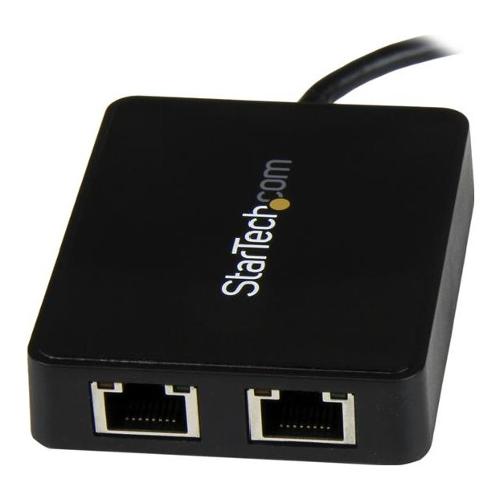 Consente di utilizzare la porta USB-C di un laptop per l'aggiunta di una connessione LAN con due porte Gigabit Ethernet e una porta USB 3.0 (Type-A)