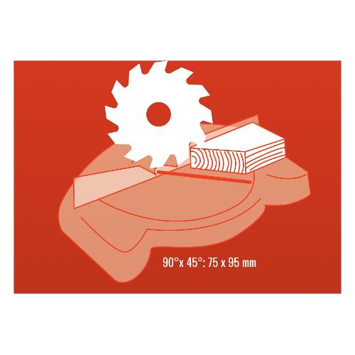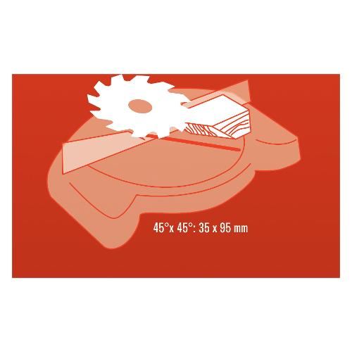 Piano girevole con scala graduata di precisione da -45 a +45° con Blocco posizioni a 15°; 22,5°; 30°; 45°; 90° Testa inclinabile a sinistra in continuo 0-45°