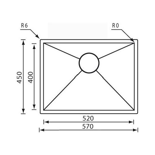 Lavello 1 vasca (57x45cm) FILOQUADRA Inox Satinato 011908XCSSP