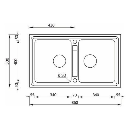 Lavello 2 vasche (86x50cm) BRANDO Inox Satinato 015104RCSSP