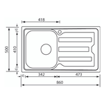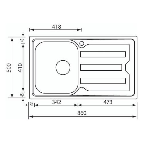 Lavello 1 vasca (86x50cm) CRISTAL Inox Satinato 010013DCSSP