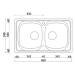 Lavello 2 vasche (86x50cm) NIHAL Inox Satinato 010844XCSSX