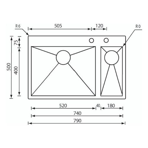 Lavello 1 vasca e mezza (79x50cm) FILOQUADRA Inox Satinato 012937DCSSP