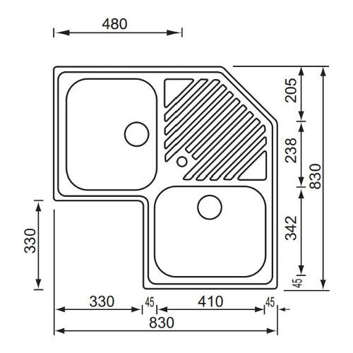Lavello 2 vasche (83x83cm) angolare ILARIA Inox Satinato 011840XCSSP