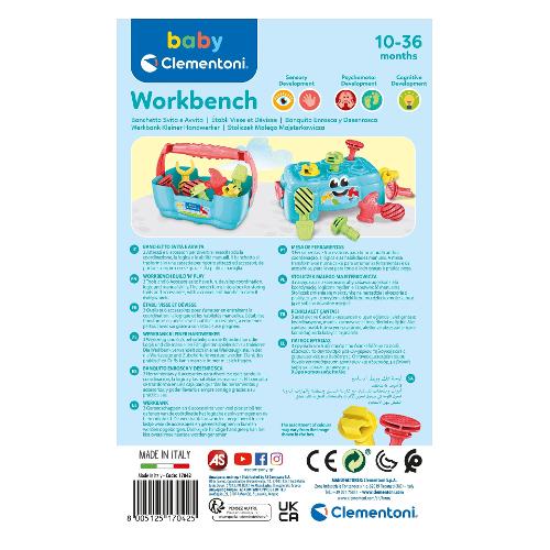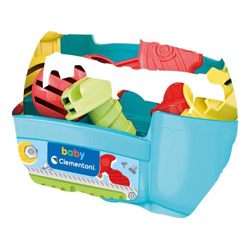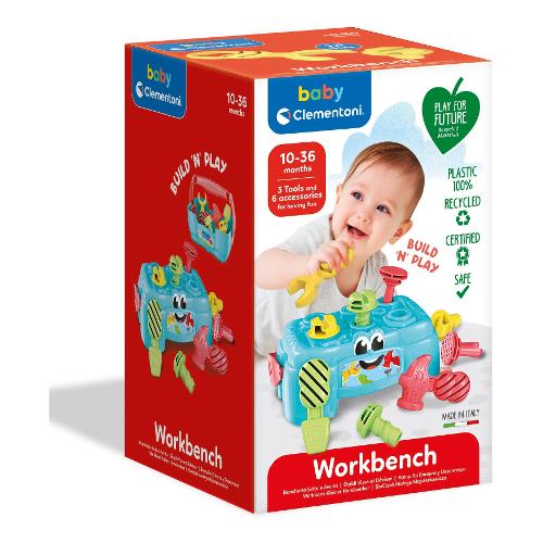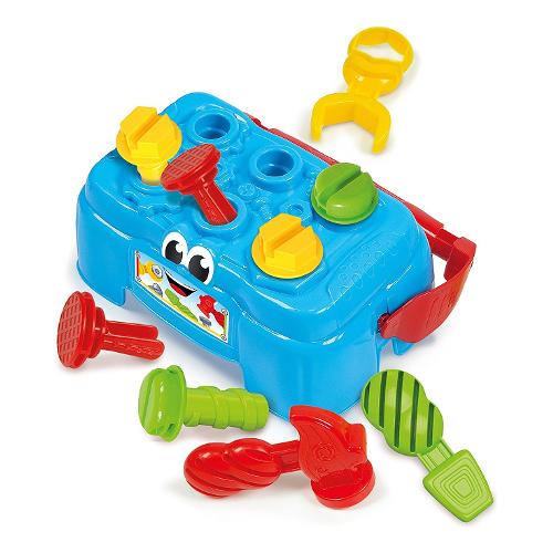 Un ricco banchetto per giocare con 3 attrezzi, un martello, un cacciavite e una chiave inglese e ben 6 accessori, chiodi, bulloni e viti, per un divertimento ricco e interattivo. Diventa anche una pratica cassetta degli attrezzi che il bambino può portare sempre con sé. Stimola la coordinazione occhio-mano e la manualità.