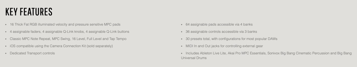 L'MPD226 è un pad controller MIDI-over-USB perfetto per produttori, programmatori, musicisti e DJ. La sua combinazione intuitiva di controlli e tecnologie MPC si combina con la semplice connettività USB per portare la sensazione del classico beat making nel mondo della produzione di musica per computer.