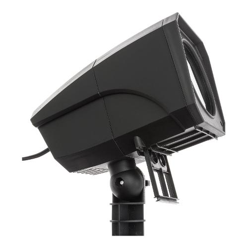 Attenzione: perchè la resa del proiettore sia soddisfacente la superficie su cui si proietta non deve essere illuminata. Maggiore è l'oscurità più è visibile la luce del proiettore. A 15 metri illumina un'area del diametro di 12 metri. Corpo e picchetto in plastica ed alluminio, trasformatore 24v uso esterno.