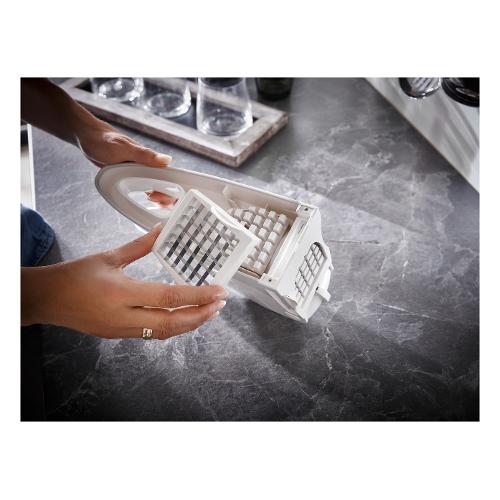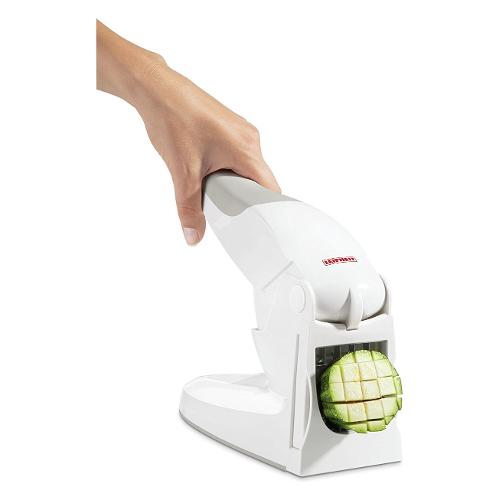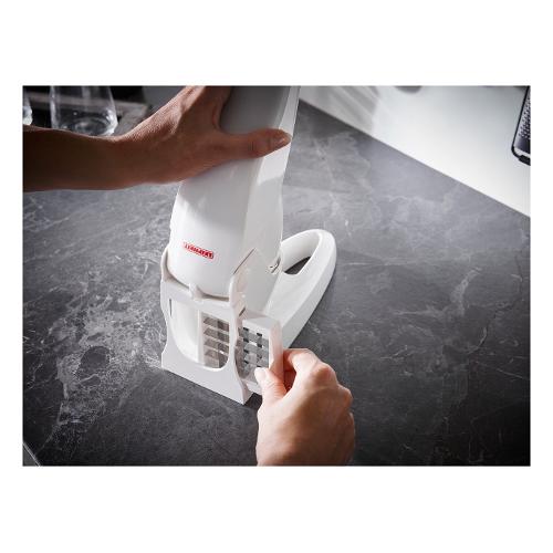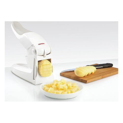I bastoncini croccanti di patate e di verdure non solo impreziosiscono ogni piatto, ma preparati al forno sono anche sani e deliziosi. Con la taglierina per patatine fritte di leifheit sono disponibili in due grandezze e il risultato è assicurato. Grazie a due inserti a lame si può tagliare istantaneamente una manciata di bastoncini da 10 mm o 12 mm. In un batter d'occhio la piastra del forno è pronta con i bastoncini di patate al rosmarino o con patatine fritte croccanti. Altrettanto velocemente si può preparare una deliziosa insalata con bastoncini di cetrioli, carote o cavoli rapa. I freschi bastoncini di verdura possono essere serviti in accompagnamento a salse, oppure preparati alla griglia: anche i bambini li adoreranno! La taglierina per patatine fritte di leifheit presenta una maneggevolezza particolarmente piacevole. Gli inserti a lame con struttura in plastica possono essere sostituiti in modo facile e sicuro. L'impugnatura ergonomica con zona softtouch antiscivolo ha una presa gradevole e la base con rivestimento antiscivolo garantisce la stabilità, impedendo lo scivolamento durante la fase di taglio. Una volta terminato il lavoro, le lame possono essere lavate sotto acqua corrente e il dispositivo può essere lavato in lavastoviglie.