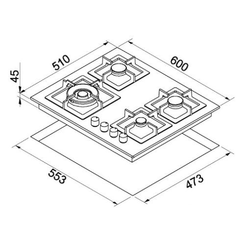 Piano cottura gas 4 zone PLANO G43 Tortora (60cm)