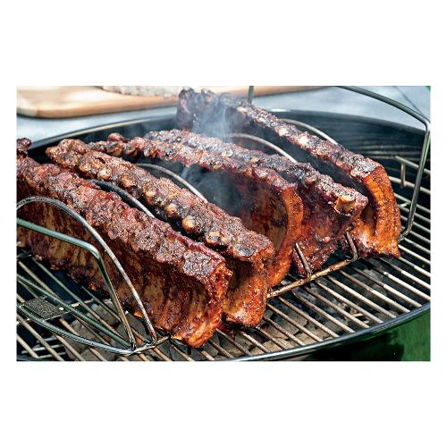 Tenerissima carne che si stacca dall’osso e che attende solo di essere gustata. Deliziosi arrosti con gli aromi della grigliatura che si sprigionano da sotto il coperchio del barbecue. Grazie al design due-in-uno del supporto di cottura Premium, è possibile cucinare numerose costine contemporaneamente, aumentando lo spazio sulle griglie di cottura; può essere inoltre utilizzato come un robusto supporto per arrosti succulenti.