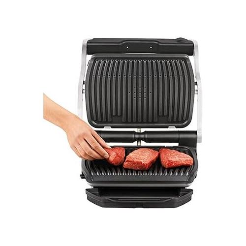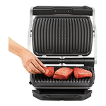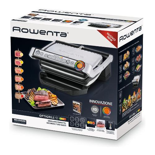 Scopri OptiGrill+, la nostra massima innovazione dotata di una modalità manuale con quattro livelli di temperatura per infinite possibilità di cottura. Ulteriormente sviluppata grazie alla tecnologia "cottura automatica con sensori", OptiGrill+ rileva immediatamente il numero di porzioni collocati sulla griglia e il loro spessore, per regolare la temperatura e il tempo di cottura in modo automatico, per ottenere risultati perfetti. La spia luminosa e il bip sonoro consentono di controllare direttamente la cottura di alta precisione e di ottenere così un risultato esattamente come piace a te: al sangue, media o ben cotto. 6 programmi di cottura per preparare ricette alla perfezione: Hamburger, Pollo, Sandwich, Salsicce, Carne rossa e Pesce, più una modalità Alimenti surgelati e una modalità manuale con 4 impostazioni di temperatura. Tra le caratteristiche aggiuntive figurano piastre antiaderenti in alluminio pressofuso, una superficie di cottura di 600 cm2 adatta a 2-4 persone e una grande vaschetta inclinata di 7° che consente di raccogliere il grasso.