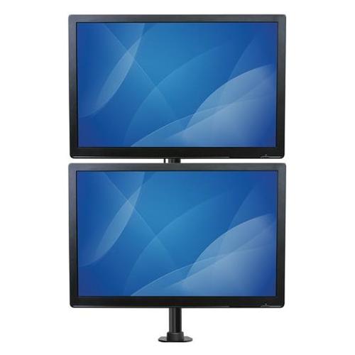 Questo supporto per due monitor, robusto ma elegante, consente di sostenere due display al di sopra della superficie della scrivania o del piano di lavoro per risparmiare spazio e aumentare la produttività. Grazie alla sua struttura in acciaio ad alta resistenza, il supporto sorregge in tutta sicurezza due monitor impilati verticalmente, ciascuno con dimensioni fino a 27".