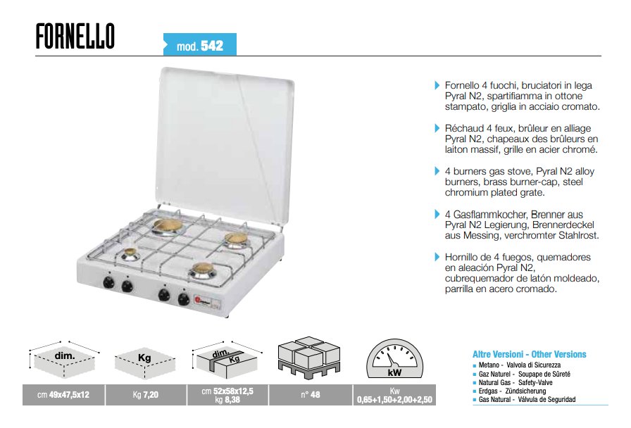 Fornello 4 zone cottura GPL 542C Bianco (49x47,5x12cm)