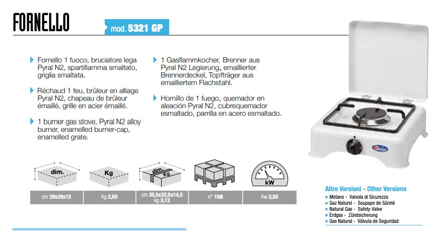 Fornello 1 zona cottura GPL 5321CGP Bianco (29x29x12cm)