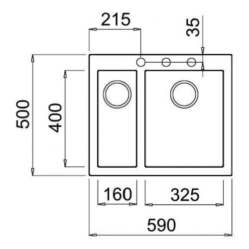 Lavello 1 vasca e mezza (59x50cm) QUADRA 150 Nero Opaco LKQ15086