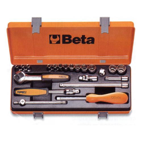 Include: 13 bussole da 4 a 14 mm, adattatore 900/16 1/4"-3/8", Prolunga 125,150 mm, snodo, cacciavite quadro,maschio snodato con impugnatura, quadro scorrevole, cricchetto reversibile
