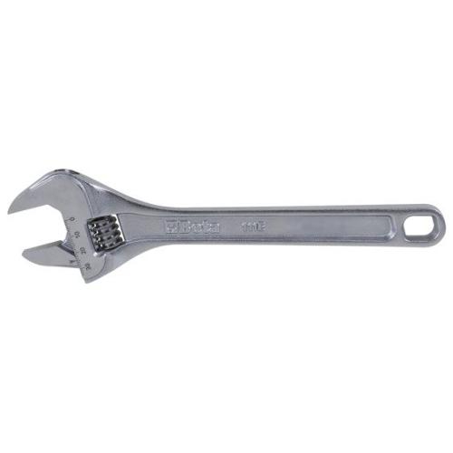 La chiave a rullino beta 111e consente di avvitare e svitare dadi e bulloni di diverse dimensioni grazie alla ganascia regolabile tramite rullino. Lo studio della nuova ergonomia ha permesso di avere un riduzione di peso del 20% per una chiave ancora più leggera e maneggevole. • rotazione destrorsa • testa ribassata e inclinata di 15° per manovrare anche negli spazi più difficili • apertura della chiave maggiorata • ingombro ridotto della testa a ganascia completamente aperta • doppia marcatura al laser in mm/pollici per regolazioni accurate • teste cromate satinate per una migliore lettura della scala • finitura cromata satinata del corpo • elevata resistenza meccanica alle torsioni grazie all'impiego dell'acciaio legato • trattamenti termici dedicati per un'ottima resistenza all'usura • impugnatura ampia per un maggiore comfort durante l'utilizzo • foro su impugnatura per appendere la chiave