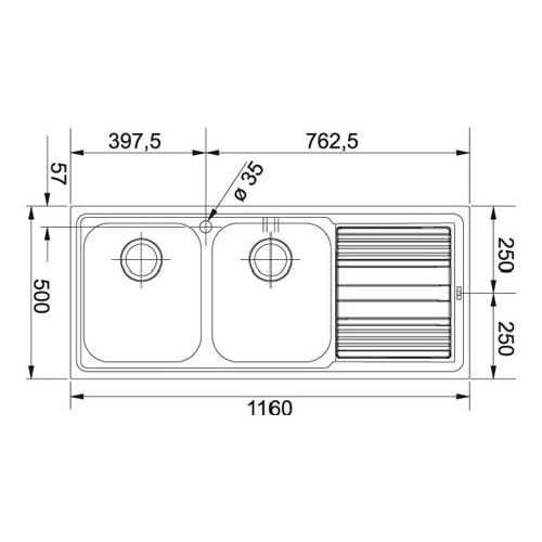Lavello 2 vasche (116x50cm) Llx 621 LOGICA LINE Inox Spazzolato 101 0150 821