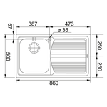Lavello 1 vasca (86x50cm) Llx 611 L LOGICA LINE Inox Spazzolato 101 0085 776
