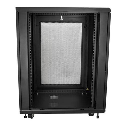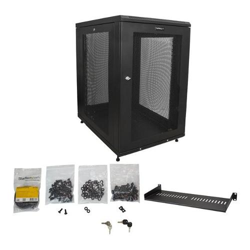 Questo server rack offre 18U di spazio in un armadietto elegante e protetto per l'installazione di dispositivi da 19" standard montabili su rack, quali i server Dell, HP e IBM, oltre ad altre apparecchiature di telecomunicazione e A/V. Il rack è compatibile per l'uso con apparecchiature conformi a EIA-310 e supporta una capacità di carico totale di 450 kg (992 lb.).