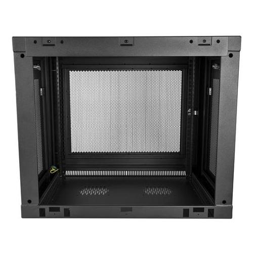 Grazie a questo armadietto rack per server 9U è possibile installare le apparecchiature conformi alla specifica EIA-310 su una parete. Il box esterno è compatibile con una capacità di carico massima di 90 kg e una profondità di installazione regolabile fino a 38,1 cm.