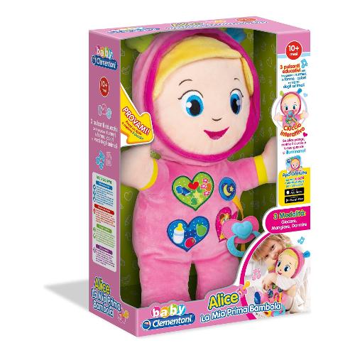 È una tenerissima bambola educativa parlante in stoffa con la quale giocare e imparare in un mondo di dolcezza! I 3 tasti interattivi sul pancino aiutano la bambina ad imparare i numeri, le forme, i colori, i cibi, i versi degli animali e tante nuove parole. Il ciuccio interattivo permetterà alla bambina di cullare la sua prima bambola, attivando la modalità di gioco della nanna. Stimola lo sviluppo affettivo, del linguaggio, la percezione visivo-uditiva e la comprensione della relazione causa-effetto.