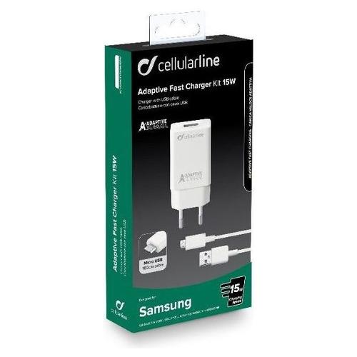 ADAPTIVE FAST CHARGER KIT 15W è il caricabatterie da rete ideale per caricare alla massima velocità e in totale sicurezza i dispositivi Samsung compatibili con la tecnologia di carica 5W, 10W e Adaptive Fast Charging e dotati di connettore Micro USB. Il cavo da 100cm con connettore Micro USB, incluso in confezione, permette la carica e il trasferimento dei dati.