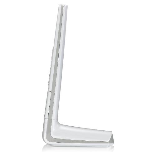 Telefono cordless caratterizzato da un grande display alfanumerico retroilluminato con menu intuitivo, con gestione intelligente della potenza radio (ECO DECT). Con sveglia, rubrica con 50 memorie e vivavoce ad alta sensibilità.
