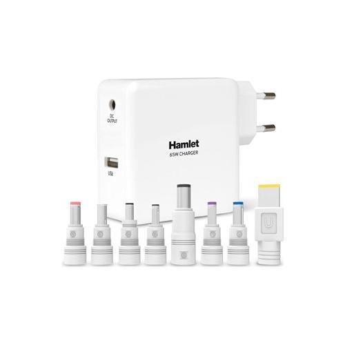 Hamlet Notebook Charger è un alimentatore universale da 65W che permette di ricaricare Notebook e dispositivi mobili come Smartphone e Tablet PC. Il cavo di ricarica è fornito di 8 connettori di alimentazione intercambiabili per le principali marche di notebook presenti sul mercato. La porta USB integrata, 5V, permette inoltre di ricaricare contemporaneamente anche i vostri dispositivi mobili.