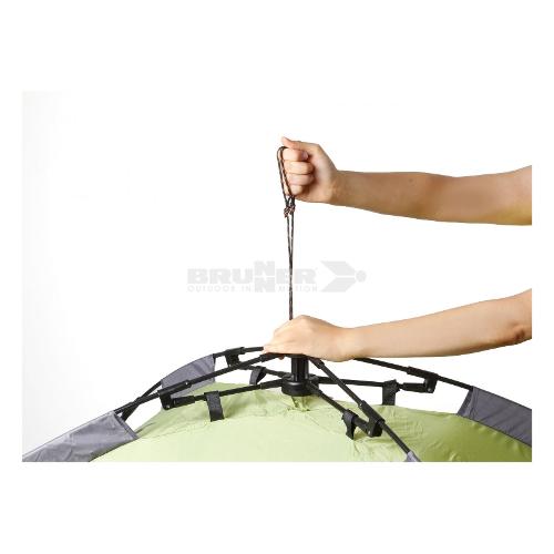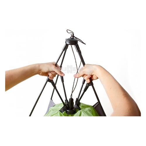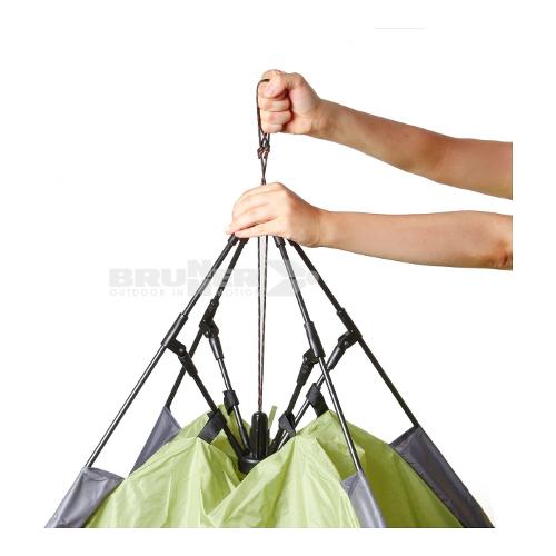 Conchiglia parasole con pali in fibra di vetro integrati ad apertura automatica. Completa di sacche zavorra portasabbia. Pronta per l'uso in pochissimi secondi. Completa di picchetti.