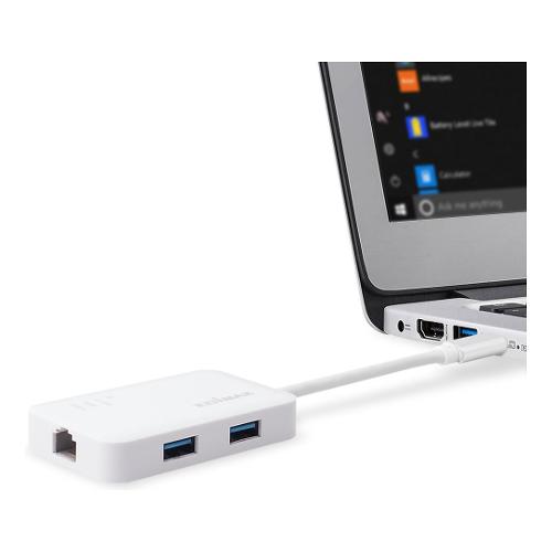 Grazie alla sua funzione di Hub USB-C a USB 3.0 SuperSpeed a 3 porte e adattatore Ethernet, Edimax EU-4308 può trasferire dati da e verso dispositivi multipli fino a 5 Gbps