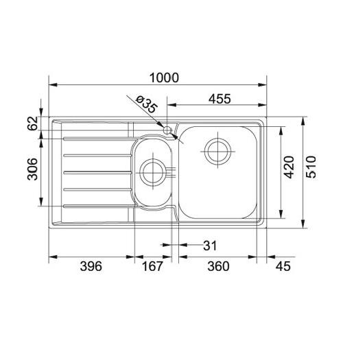 Lavello 1 vasca e mezza (100x51cm) Nex 651 NEPTUNE Inox Spazzolato 101 0040 737