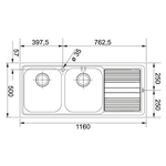 Lavello 2 vasche (116x50cm) Lll 621 LOGICA LINE Inox Decor 101 0086 271