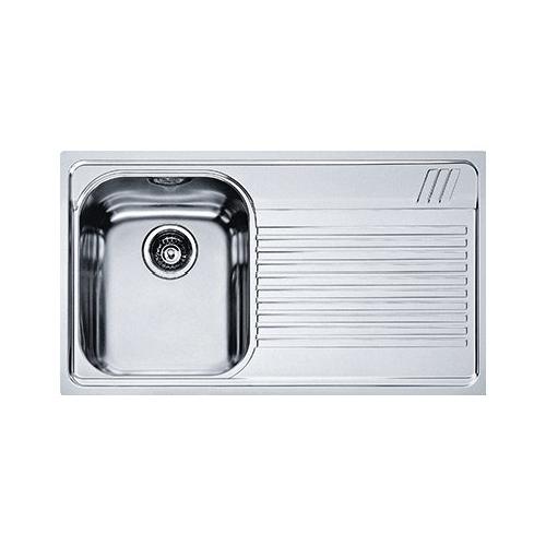 Lavello da 86 cm, bordo slim, 1 vasca, dissipatore, sigillatura prefissata, dimensioni 860x500 mm, vasca 340 x 400 x 205 mm, foro incasso 840x480 mm.