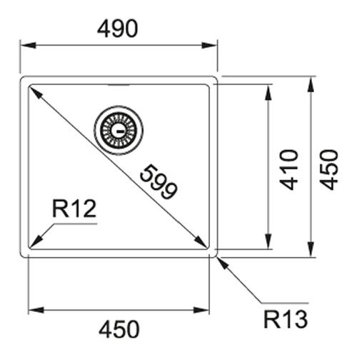 Lavello 1 vasca (49x45cm) Bxx 210 45 110 45 BOX Inox Spazzolato 127 0369 250