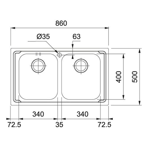 Lavello 2 vasche (86x50cm) Lll 620 L LOGICA LINE Inox Dekor 101 0153 297