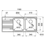 Lavello 2 vasche (116x50cm) Srx 621 SMART Inox Spazzolato 101 0356 896