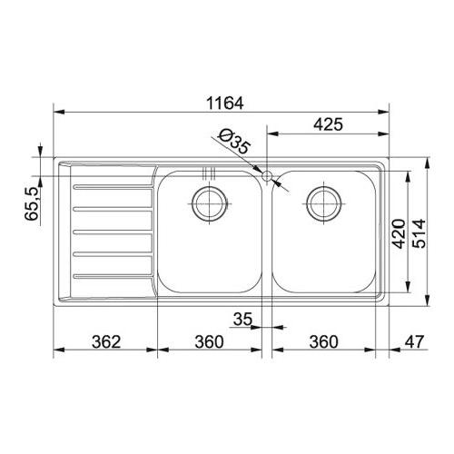 Lavello 2 vasche (116,4x51,4cm) Nex 221 Sx NEPTUNE Inox Spazzolato 127 0059 719