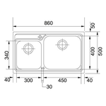 Lavello 2 vasche (86x50cm) Gax 620 GALASSIA Inox Spazzolato 101 0017 507