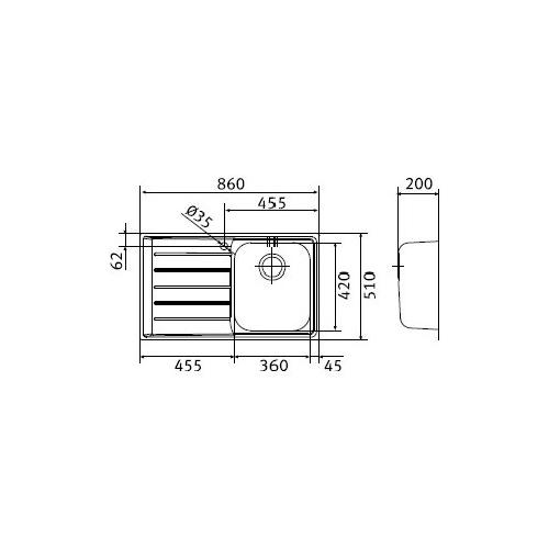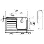 Lavello 1 vasca (86x51cm) Nex 611 NEPTUNE Inox Spazzolato 101 0040 732