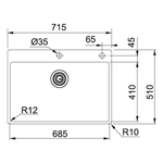 Lavello 1 vasca (71,5x51cm) Bxx 210 68 Tl BOX Inox Spazzolato 127 0378 049
