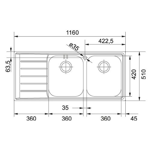 Lavello 2 vasche (116x51cm) Nex 621 NEPTUNE Inox Spazzolato 101 0040 734