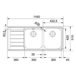 Lavello 2 vasche (116x51cm) Nex 621 NEPTUNE Inox Spazzolato 101 0040 736