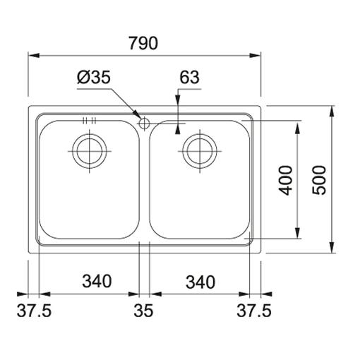 Lavello 2 vasche (79x50cm) Llx 620 LOGICA LINE Inox Spazzolato 101 0153 289